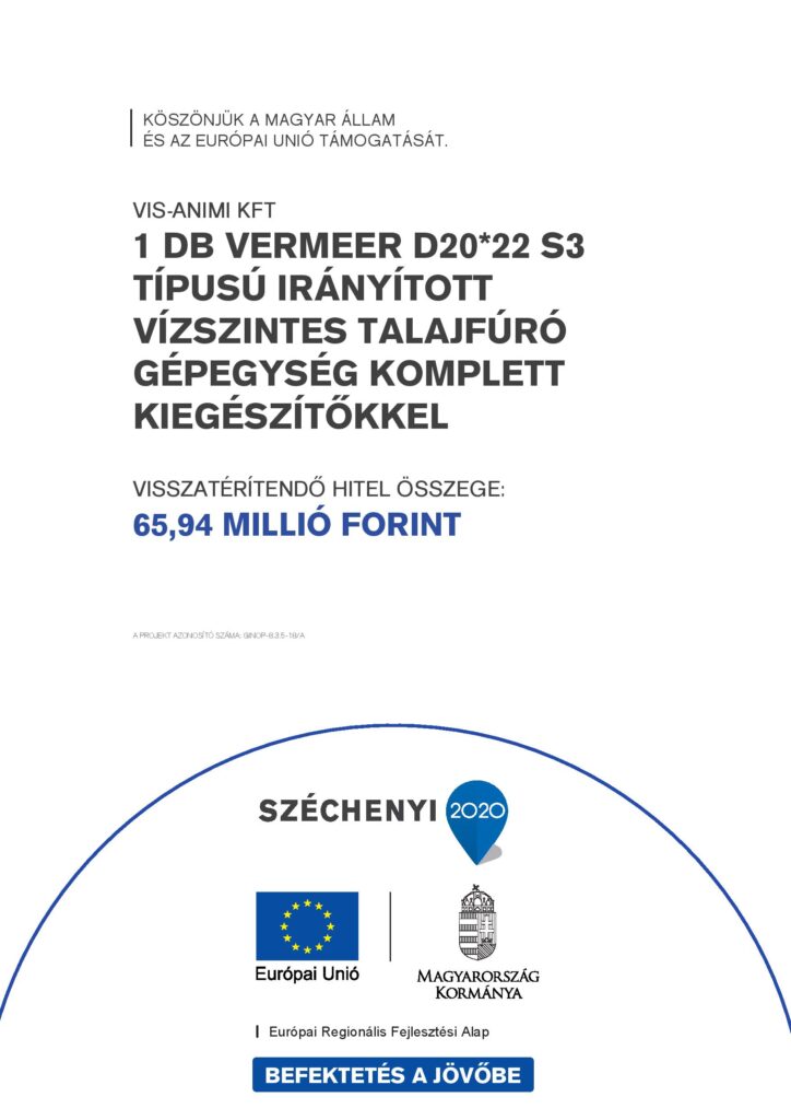 Projekt címe: 1 DB VERMEER D20*22 S3 TÍPUSÚ IRÁNYÍTOTT VÍZSZINTES TALAJFÚRÓ GÉPEGYSÉG KOMPLETT KIEGÉSZÍTŐKKEL
